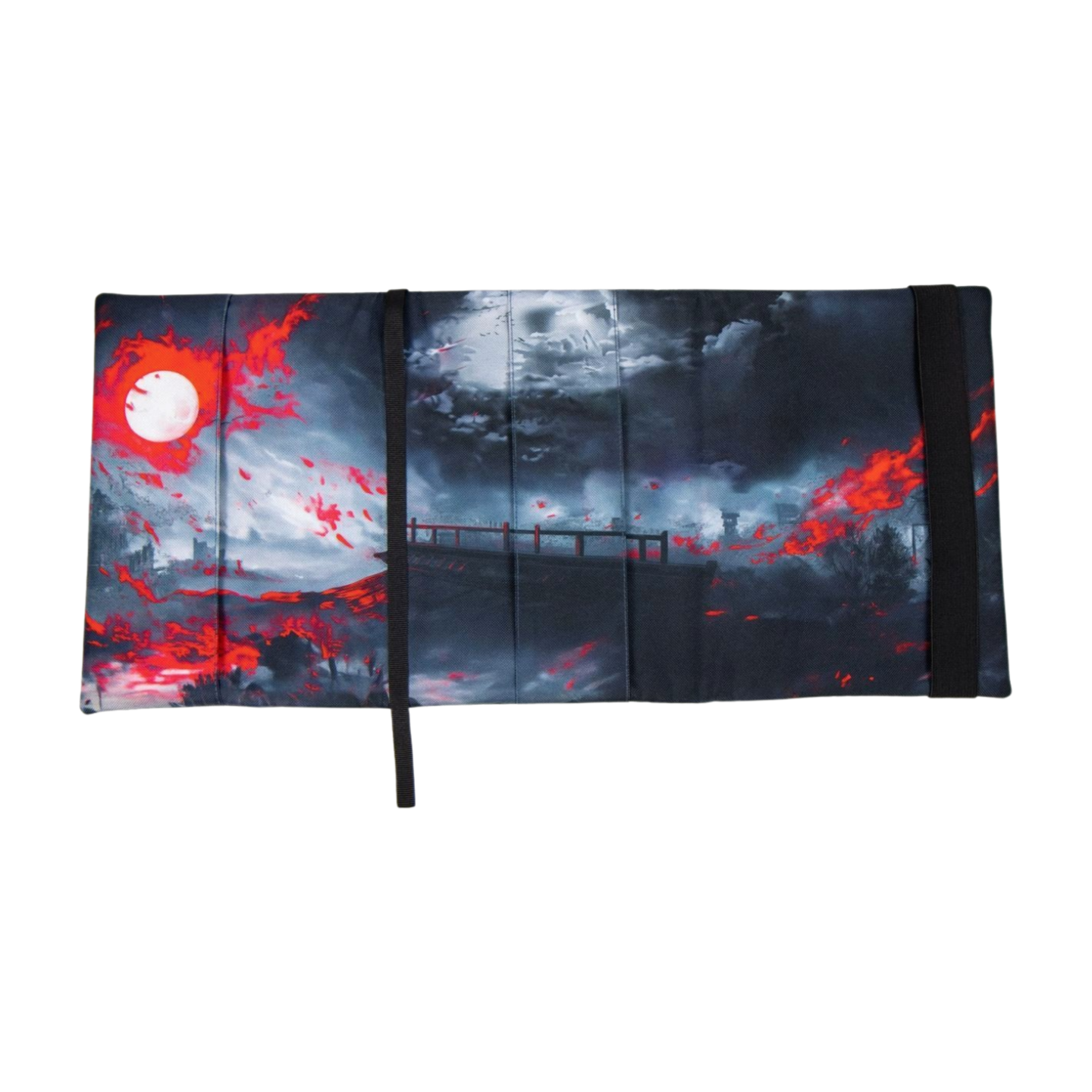 „Assassin” to wzór, który opowiada własną historię — intensywną, mroczną i dramatyczną. Trzy wojowniczki stoją po bitwie, a z ich mieczy kapie krew. W tle majaczy zniszczone miasto i most, a nad nim odlatuje smok, rozświetlany krwistym blaskiem księżyca. Całość utrzymana jest w odcieniach szarości z dramatycznymi akcentami czerwieni, które potęgują poczucie napięcia i grozy. Ten otulacz wygląda jak kadr z epickiej opowieści — idealny dla fanów fantasy, anime i dark fiction.